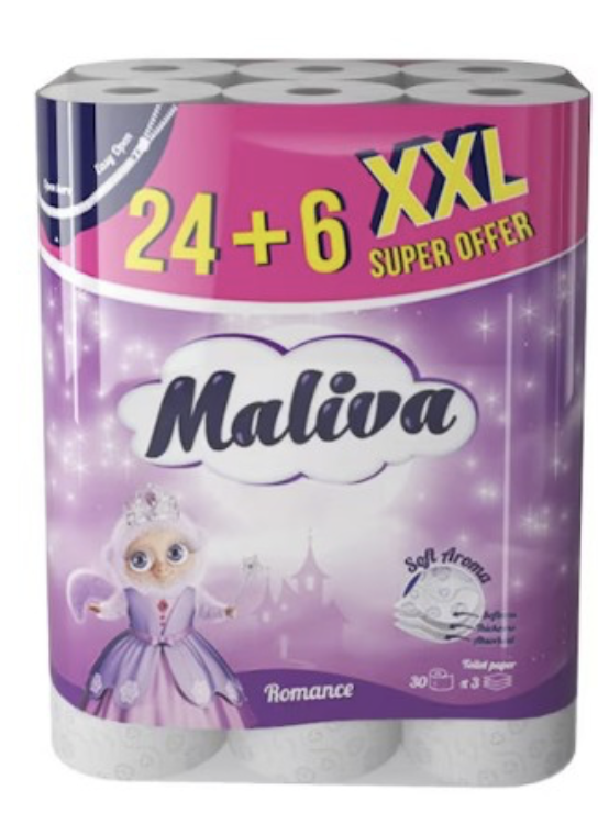 Maliva ტუალეტის ქაღალდი Romance 3ფენა 24+6ცალი