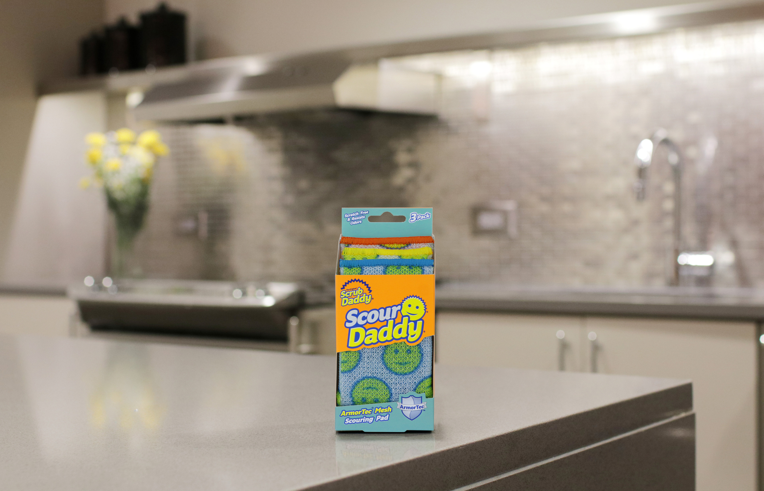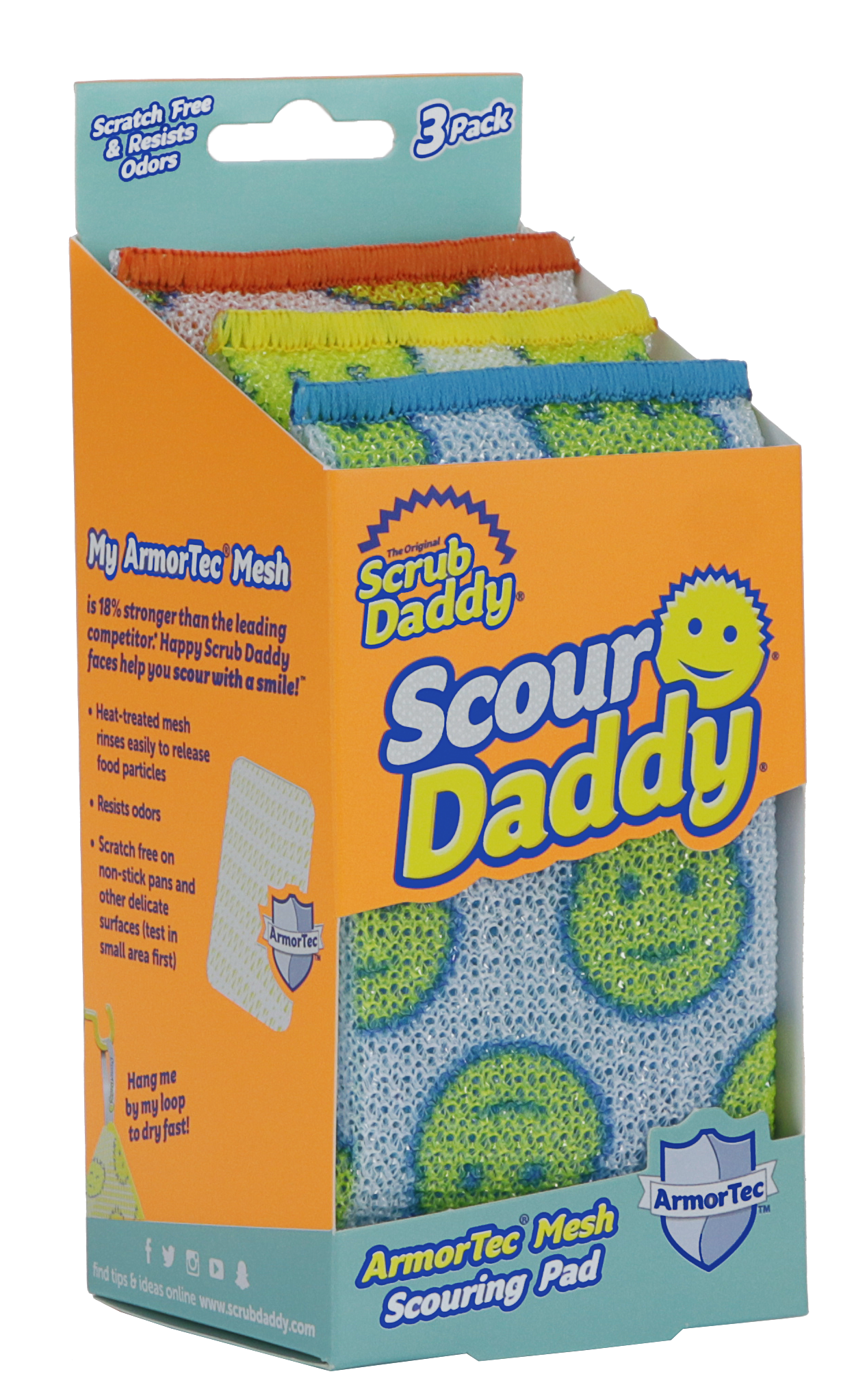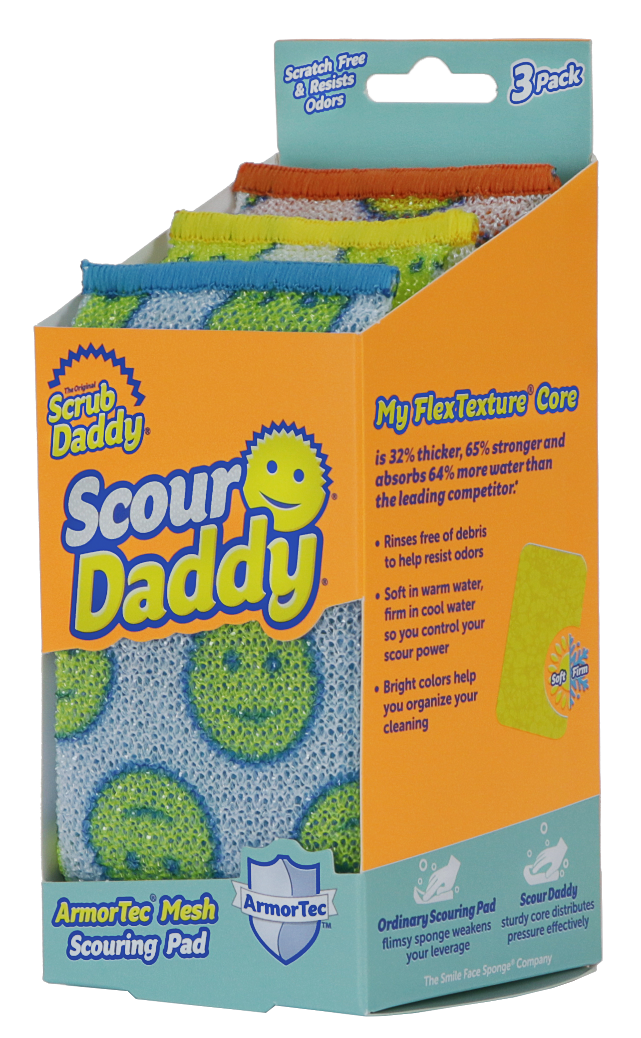 Scour Daddy უფრო ძლიერი და შთამნთქმელი საწმენდი საფენია. შიგნით ტექსტურის შემცვლელი FlexTexture ქაფი უძლებს სუნს და უზრუნველყოფს სტრუქტურას. გარედან ArmorTec-ის ბადე გამძლეა და არ იკაწრება.